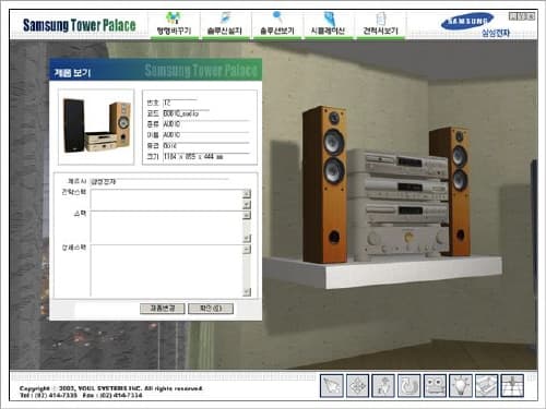 기존의 삼성전자 디지털 팰리스 프로그램의 고도화 프로젝트. 기존 프로젝트는 OpenGL과 MFC 기반으로 제작했다면 이번 버전은 게임엔진인 Woori Engine을 이용해서 제작했다.